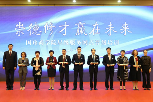 国珍商学院副院长邢岩为二星服务网点晋级培训做总结性发言最后,商学院院长王宁和副院长邢岩为新时代精英颁发结业证书,年底各位新时代精英将登上象征着尊崇与荣耀的星光大道上,享受专属表彰与嘉奖!