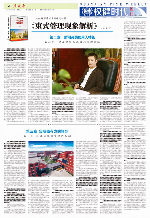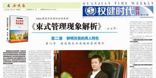 2016年10月21日,《今晚报•权健时代周刊》继续整版连载《束式管理现象解析》一书内容。