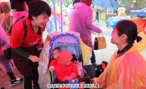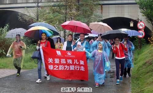 “爱使我们在一起,我们手拉手;爱是我们的回答,面对挑战;希望是我们的祝福,手拉手、心相连,我们是一家人。”爱心志愿者们三五成群,沿着既定的线路徒步前行,大家或打着雨伞、或穿着雨衣,以眼神鼓劲,用微笑问候,凭借着坚韧的意志和奉献爱心的渴望,全部走完既定的环公园路程,安全返回,互致胜利的祝福,并合影纪念。