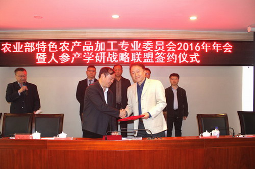 10月13日,农业部特色农产品加工专业委员会2016年年会在集安成功举办。会上,康美新开河与中国农业科学院特产研究所、吉林大学药学院、吉林农业大学中药材学院等大专院校、科研院所发起成立人参产业“产学研战略联盟”,并签订“产学研战略联盟”合作协议书。