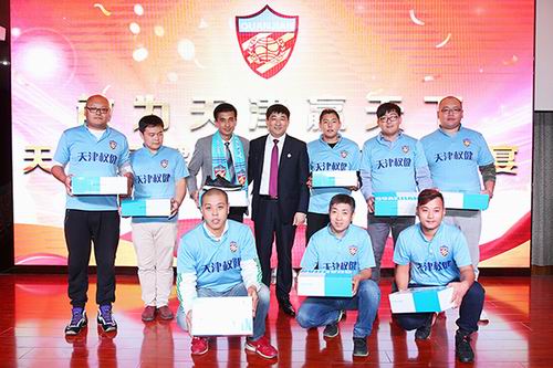 天津球迷协会向束昱辉董事长赠送“愿为球迷铸未来 敢为天津赢天下”的纪念方鼎