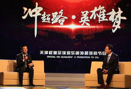 权健集团董事长、天津权健足球俱乐部总经理束昱辉接受采访