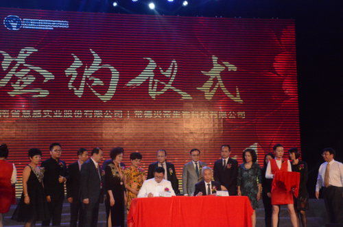 随后朱斌大使代表慧泽系统慧嘉股份与常德公司陈牧董事长进行了隆重的签约仪式,慧嘉将与炎帝常德子公司强强联手,努力向资本上市目标奋进。最后的启动仪式环节,炎帝公司和系统的领导全体走上舞台心手相牵,定下了新的目标,携手开启新的纪元。