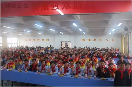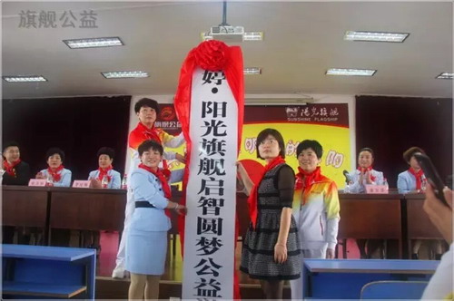 为表示谢意,马校长代表校方为旗舰公益献上了”捐资助学,情深似海”锦旗,在大家热烈的掌声中孟理事长与马校长共同为康婷阳光旗舰启智圆梦公益学校授牌。