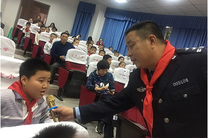安全教育课中,警察叔叔和孩子们进行互动