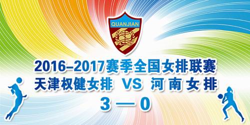 2016年10月29日16时,2016-2017赛季全国女排联赛首轮争夺展开,天津权健女排客场挑战河南女排。最终,天津权健女排直落三局,以3比0取得联赛开门红。三局比分分别为,25比21、25比15、25比22。