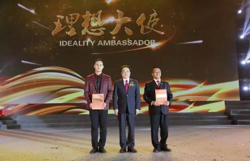 在全场热烈的掌声中,理想大使颁奖仪式在盛典现场震撼上演。理想大使身披绶带阔步走向舞台,焦家良博士郑重地将代表至上荣耀的勋章授予理想大使,并致以最诚挚的祝贺。鼓励他们心怀理想,砥砺前行,开创未来。