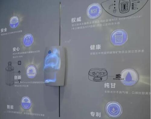 展示区里最让人难忘的是投影光雕,运用高科技视频与产品实体结合的方式,展现净水器的工作原理及功能优势。