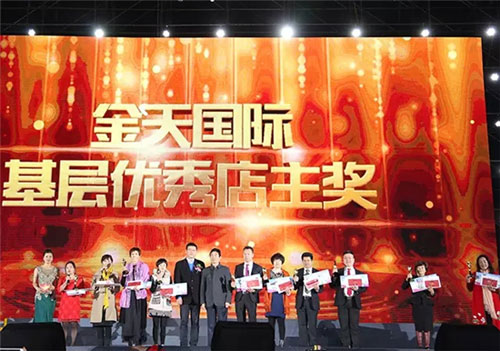 在最后的领越篇章,现场通过VCR播放了采集的金天家人的梦想,健康梦、幸福梦、创业梦、成功梦,家人的梦想就是金天国际的梦想,就是“扬中医养生之魂,铸民族品牌之威”实业兴邦的梦想,就是“让更多的生命充满活力”健康幸福的梦想,就是带领“大众创业,万众创新”健康、稳健、持续发展的梦想。为感恩销售精英和管理团队对金天事业发展的辛勤付出,盛典现场分别为金天国际优秀店主、基层优秀特聘人员颁发奖励,他们获得金天国际定制IPad一台、价值7800元的VIP兑换卡一张、公司领袖或知名书法家或明星签名的《让生命充满活力》专著一本、金天国际专享海外游,并将尊享与董事长共进晚宴的荣耀。荣誉授勋环节共为27名市场特聘领袖进行了授勋,金灿灿的勋章铬印功绩、尽显王者之风。双创市场理事会副主席樊保宏及理事何浩民、赵一新、许吉带领所有市场董事进行了梦想宣言:我们将紧随金天国际的脚步,携手并进、勇往直前,共同为实现生态保养产业化,让更多生命充满活力而努力奋斗!