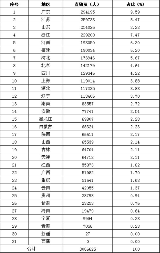 来源:商务部直销行业管理信息系统