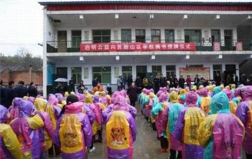 2016年10月27日上午,冒着绵绵细雨,启明公益基金会、北京罗麦科技有限公司河南分公司连同河南省、三门峡市工商局干部职工代表赶往卢氏县杜关镇民湾小学,举行向贫困山区捐书授牌仪式。虽然,雨越下越大,但是民湾小学的学生们坚持在雨中表演了手语舞蹈《感恩的心》,合唱了歌曲《学习雷锋好榜样》,表达他们对远道而来客人的欢迎;参加仪式的所有嘉宾、工商干部职工则全部冒雨观看,再大的风雨也无法阻挡爱的征程。本次活动向24所中小学捐赠图书、扶贫款共计125万元。