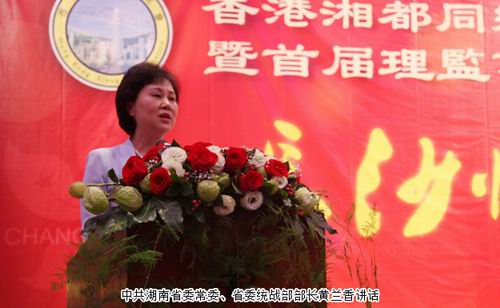 湖南香港湘都同乡会的成立得到了中央政府驻港联络办、湖南省委省政府、长沙市委市政府的关心和大力支持。中央政府驻港联络办副主任杨建平先生,中共湖南省委常委、省委统战部部长黄兰香女士,省政协港澳台侨和外事委员会主任陈益枝,省委统战部副部长陈潇,省政府驻深圳办事处主任廖克勤,中共长沙市委常委、市委统战部部长谭小平等到会祝贺。绿之韵集团胡国安董事长任名誉会长,华谊兄弟(长沙)电影文化城有限公司董事长刘启东任首届会长,绿之韵集团战略委、善德国际创始人张晓琴任执行会长。