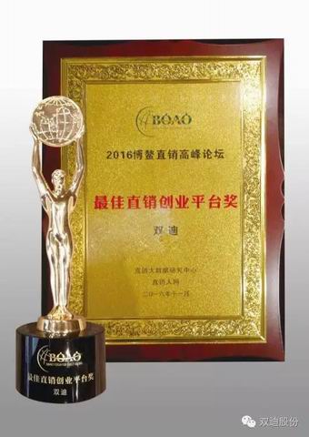 11月1日至2日,“展望未来直销新秩序——2016博鳌直销高峰论坛”在海口举行。双迪股份凭借卓越实力、优质资源、周到服务问鼎“最佳直销创业平台”大奖。