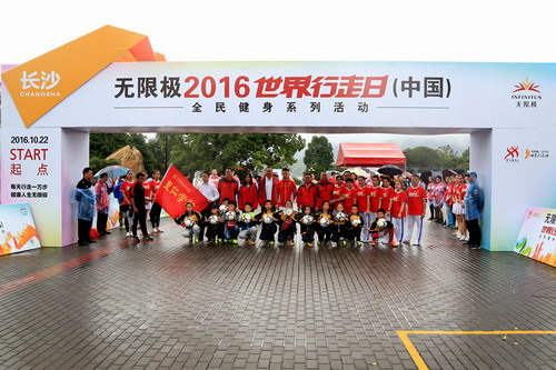 当天,受益于“无限极快乐足球”公益项目资助的浏阳市里仁学校的学生们表演了一场精彩绝伦的花式足球,赢得了观众的阵阵喝彩。本站活动公众报名共捐出33375元善款,将用于世界行走日活动联合中国青少年发展基金会、思利及人公益基金会开展的“希望工程·无限极快乐足球”公益项目,为农村及贫困地区小学提供足球设施、课程以及足球文化的建设与推广,让孩子们找到运动的快乐,培养健康意识与正面思维的情志。