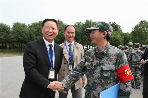 公司董事长徐之伟在江南奇兵指挥部原火箭军中校团长钟道川和原海军上校团长杨传珠的陪同下,亲临训练现场,检阅了受训团队。