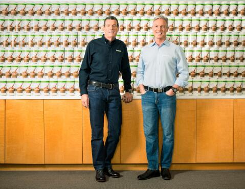 Richard P. Goudis(右)将成为康宝莱CEO,迈克尔·奥·约翰逊(左)将于2017年6月1日转任执行主席