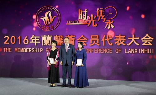 大会期间,首届蘭馨薈理事会成立,理事会成员共8人,分别是向前女士、肖淑蓉女士、闫泓汝女士、任灵女士、李建潾先生、陈静颐女士、李逸欣女士、张丽莉女士。蘭馨薈副会长刘彩凌女士为首届理事颁发了理事证书。他们将在2016-2017年期间,行使理事权利,为蘭馨薈的发展献计献策。期间金士力佳友总经理姚则兵为北京中医药大学基础医学院副院长贺娟女士,天津美术学院美术史论系硕士、中国美术家协会会员、天津青年书画艺术研究院院长庄雪阳女士颁发蘭馨薈名誉理事证书。