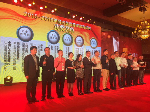 10月24日,在昆明举行的第16届中国药店高峰论坛颁奖典礼上,福瑞达医药集团旗下的明仁颈痛片和小明仁小儿解感颗粒荣获中国药店店员推荐率最高品牌奖。