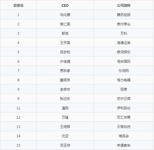 据了解,本次榜单的评选涵盖了中国所有的上市企业(包括在上海、深圳、香港、台湾、纽约和纳斯达克交易所公开发行股票的公司),共有357家公司的358位CEO(有一家公司由两人共同担任CEO)参选。