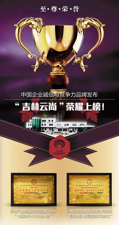 吉林云尚保健食品有限公司荣获“信用中国·诚信服务示范单位”;云尚产业集团董事长徐哲被评选为“中国商界十大杰出人物”。