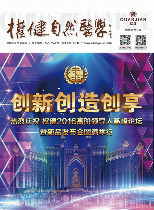 《权健自然医学》杂志2016年9月专刊现已隆重出刊,本刊特别报道了“创新 创造 创享——热烈庆祝权健2016高阶领导人高峰论坛暨新品发布会圆满举行”,欢迎广大事业伙伴及时了解集团近期的热点信息及动态报道,助力市场发展。
