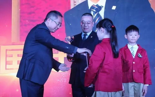 中共湖南省委宣传部副部长、省文明办主任刘进能为胡国安董事长颁奖