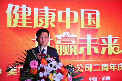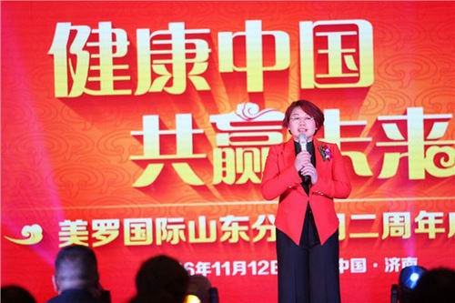 山东分公司周年庆典,受到了集团领导的高度重视,美罗国际集团联合创始人夏历董事长、于智慧总裁亲致贺信,充分肯定了山东分公司一年来做出的骄人成绩和突出贡献,能够始终贯彻集团战略方针,牢牢地把握科学发展、创新发展、规范发展的方向,为经销商提供了全方位的服务,为集团人品、产品两个品牌建设做出了贡献,确保了“三网联动”战略在齐鲁大地以及周边地区较好的实施,得到了地方政府的大力支持与充分肯定。同时对奋战在齐鲁大地的山东团队给予了高度评价,齐鲁大地市场团队抓住了国家“一带一路”建设和健康产业历史性机遇,发挥区域优势,朝气蓬勃,上下一心,团结协作,逐鹿中原,迅速占领山东市场的同时,快速向全国辐射,队伍不断发展壮大,成为一支能征善战的生力军,涌现出了一大批新的市场英雄,大步迈向高速发展新阶段。美罗国际全面实施“三网联动”战略以来,取得了突破性进展,全国各个市场发展形势喜人,直销业绩连续倍增,近千家连锁药房落地生根,令世人瞩目。属于美罗国际的“大美罗、大品牌、大资本、大发展、大未来”新时代已经到来。