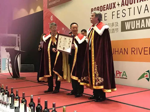 这个月初,我以法国中资酒庄协会(AVFC)联席主席的身份,参加了在武汉举行的波尔多及新阿基坦葡萄酒节。在11月5日举行的晚宴上,波尔多葡萄酒骑士团为我们举了隆重的授勋仪式。