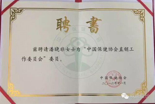潘晓非被中国保健协会聘为“中国保健协会直销工作委员会”委员