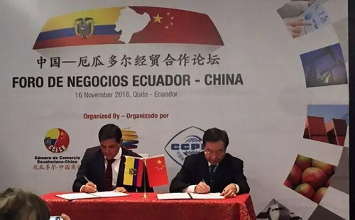 (中国贸促会与厄瓜多尔-中国商会签署合作协议)