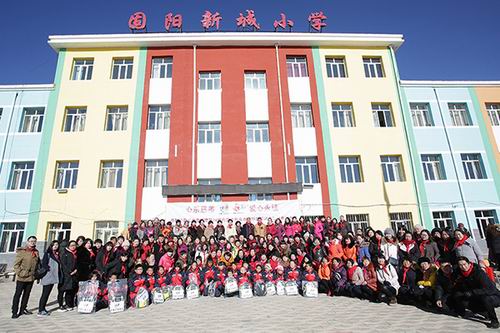 ▲内蒙古包头市固阳县新城尚赫刘金萍小学揭牌仪式合影留念