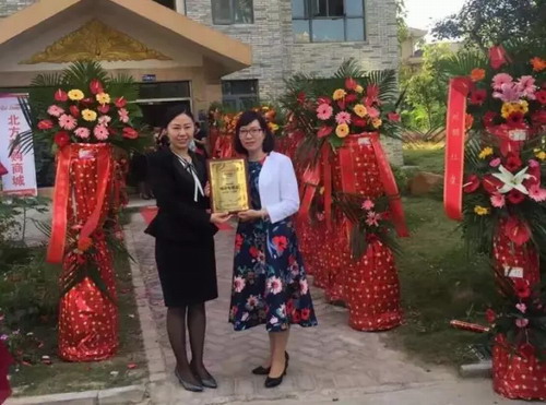 北方大陆渠道部副总监刘雨婷女士为景洪专营店店主搬授权牌