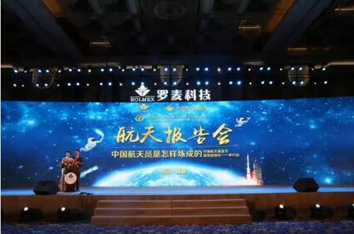 2016年11月22日,罗麦科技航天事业报告会在成都金堂恒大酒店隆重召开,三千余位来自四川、重庆、贵州、昆明的营销伙伴齐聚一堂,接受爱国主义教育,了解中国航天事业的发展。