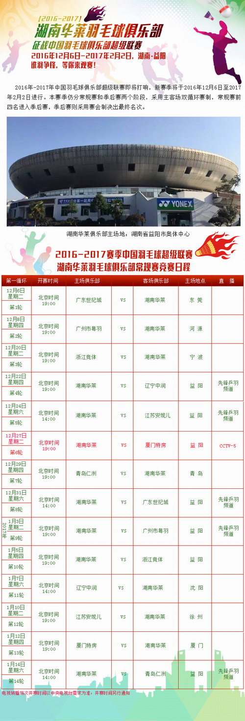 华莱羽毛球俱乐部征战中国羽毛球超级联赛