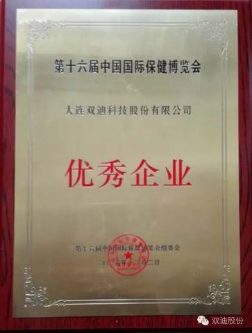 12月2日,素有“保健行业奥斯卡”之称的第十六届中国国际保健博览会暨中国(昆明)保健节在昆明滇池国际会展中心隆重召开。大连双迪科技股份有限公司以其高科技企业实力和高颜值产品囊括了七项大奖。其中大连双迪科技股份有限公司获“优秀企业” 奖;双迪股份董事长潘晓非获“优秀企业家”奖;双迪牌尚得泰口服液获“优秀产品”奖;知水微型富氢制水器、双迪牌鹰嘴纳豆、尚清全自动空气净化器、知水牌富氢果蔬消毒机获“指定产品” 奖。