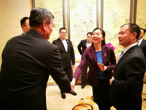 团中央书记处书记,中国青年志愿者协会会长尹冬梅(图中)亲切接见三八妇乐集团董事长袁晓峰(图左一)