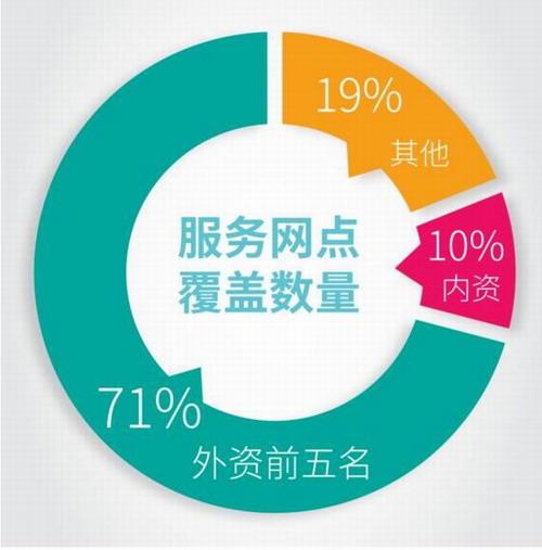 从直销服务网点覆盖区域上看,外资企业直销服务网点的覆盖区域远远超于内资企业。直销服务网点覆盖区域数量最多的前十位企业分别是:雅芳(30)、安利(29)、玫琳凯(29)、无限极(29)、克缇(27)、康宝莱(24)、完美(24)、新时代(内资23)、如新(19)、宝健(19)。外资企业中表现最为突出的是雅芳,遍布中国30个地区,除了港澳台没有纳入统计内,其他省份都可以看到雅芳的足迹。而前十位企业中,仅仅出现新时代这一家内资企业。