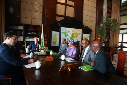 2016年12月6日,受几内亚共和国总统阿尔法·孔戴先生及总统夫人杰内·孔戴女士的委托,几内亚共和国驻华大使 Ibrahima Sory Sow先生及其夫人Djamilatou Bah女士、几内亚驻华商务参赞Kaba Ibrahima Sory先生、商务助理Naby Issa Sylla先生回访天狮集团总部——天狮国际健康产业园,李金元董事长携集团高管热情接待了几内亚客人一行,双方就中几两国的经济发展,贸易投资,市场准入等商贸合作进行了友好交流,并进一步探讨相关合作项目的推进与落地。