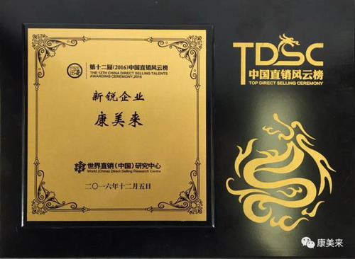 康美来斩获2016中国直销风云榜“新锐企业”奖