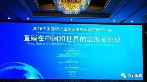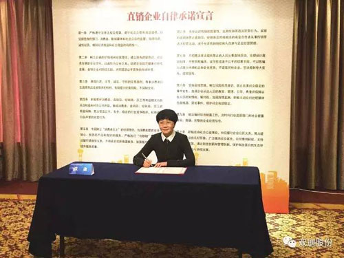 12月7日至8日,由国家工商行政管理总局反垄断和反不正当竞争执法局主办的2016年中国直销行业规范发展国际交流研讨会在上海揭开帷幕。研讨会以“直销在中国和世界的发展与挑战”为主题,来自国家工商总局、商务部、公安部以及国内部分学术研究机构、工商系统、直销企业代表,以及世界直销协会联盟部分成员代表出席了本次研讨会。双迪股份受邀参加了此次交流研讨会。会上,董事长潘晓非代表公司签署了《直销企业自律承诺宣言》。