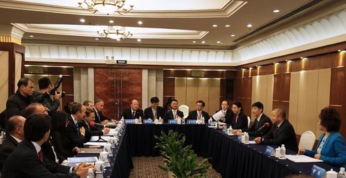 会议开始前,国家工商总局领导在VIP小会议室,与世界直销协会联盟主席席德•狄维士先生、世界直销协会联盟秘书长塔慕娜加比莱阿女士、美国直销协会、欧洲直销协会、马来西亚直销协会的代表,以及安利、无限极、康宝莱、如新、欧瑞莲、完美、长青等国际知名企业代表单独进行了会面。李金元董事长作为世界直销协会联盟CEO委员会中唯一的中国代表,受邀参加了会前的见面会。