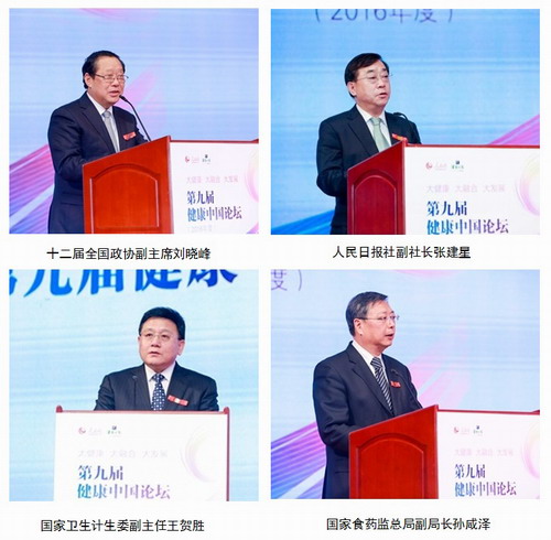 十二届全国政协副主席、农工党中央常务副主席刘晓峰,国家卫生计生委副主任王贺胜,国家食品药品监督管理总局孙咸泽,人民日报社副社长张建星等领导出席开幕式并讲话。来自政府部门、行业协会、媒体机构负责任人,知名学者,健康产业领军企业代表约700人出席了论坛。