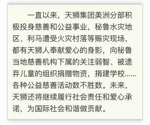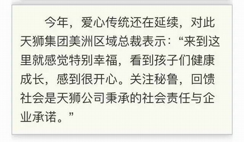 天狮持续捐助秘鲁CHILCA区LOS PATITOS幼儿园