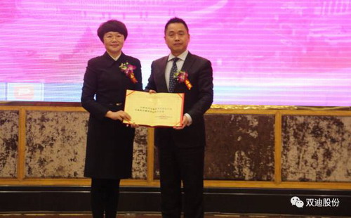 双迪股份董事长潘晓非向融合系统联合总裁宋文忠颁发聘书