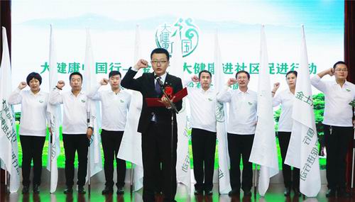 接下来,金士力佳友内蒙古分公司经理赵岩为“大健康中国行”志愿者进行了授旗及宣誓仪式。