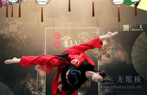 开幕表演是温柔而充满力量的双人舞蹈,以动态和形体传达出穿越时空的东方美,也将无限极萃雅中草药护肤平衡、温和而持久的理念融合在了表演当中。