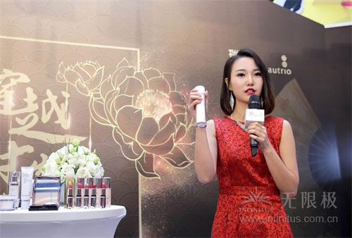 摄影展开幕当天,东方美大赛冠军张一帆亲自上阵,为大家展现萃雅特别修护系列的功效。