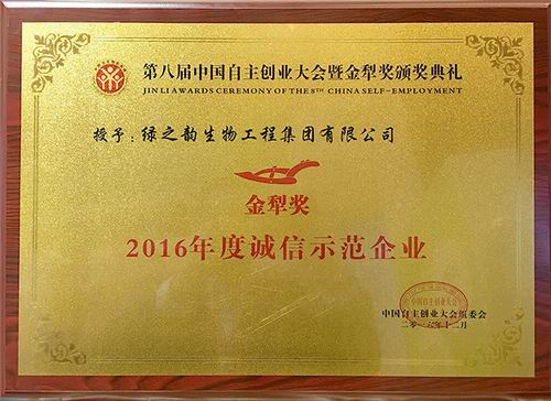 绿之韵获2016年度诚信示范企业等多项殊荣
