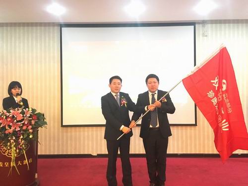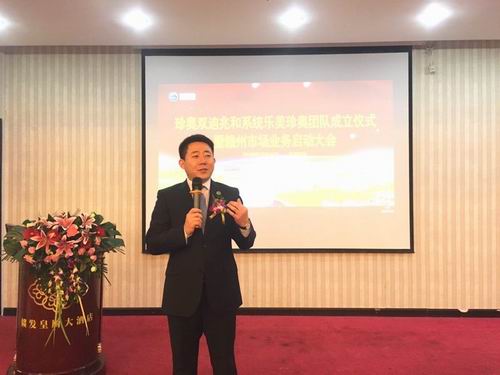兆和系统市场营销总监陶学伟为乐美珍奥团队授旗,标志着乐美珍奥团队正式成立,赣州市场业务也由此拉开序幕。