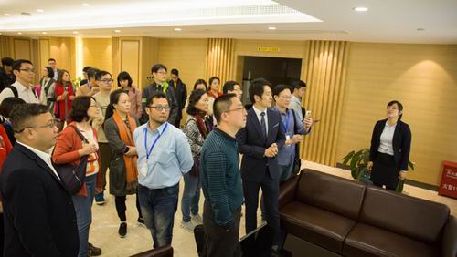 在二楼客服中心,金日行政人事部主管卢秀玉则带领大家参观了智能会议室、金日客服部,冠华总裁更是热情地为贵宾们介绍了金日产业布局,强大实力折射出金日近40年的不凡之路。